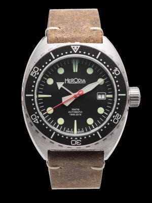 Herodia Series 1 Sean Dive Watch - Black Dial and Bezel, Brushed Stainless Steel Case.