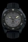 The 120-click unidirectional rotating bezel is made of 316L stainless steel with a black PVD coating. It has a matte black bezel insert of Ceramfine® (an innovative highly scratch-resistant alloy consisting of 92% Titanium Grade 4 and 8% ceramic). The bezel insert also has a triangle pointer with SuperLuminova® C5 insert at the 12 o'clock position. The matte charcoal grey dial is protected by a 5.9mm extra thick domed scratch-resistant sapphire crystal with anti-reflective coating and the hands are made of 316L stainless steel with a black PVD coating and luminescent surfaces of SuperLuminova® C5. The indexes are composed of SuperLuminova® Black.